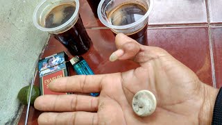 - EXPERIMENT tes mustika keong Buntet pake kopi panas