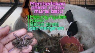 - Pemberian pakan untuk murai batu saat kawin, mabung, belum birahi, dan mengeram